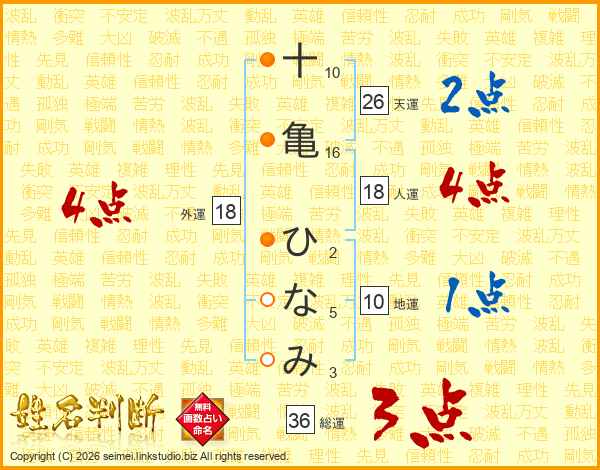 十亀ひなみさんの外運は18画の4点!