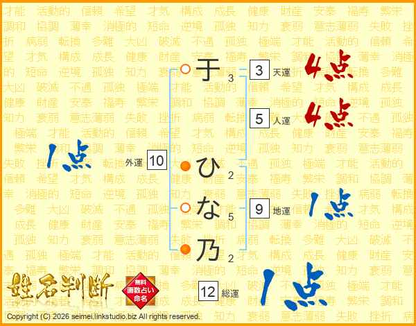 于ひな乃さんの総運は12画の1点!
