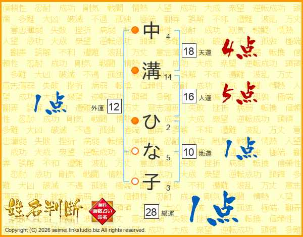 中溝ひな子さんの天運は18画の4点!