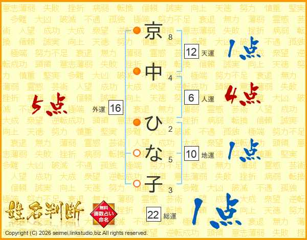 京中ひな子さんの総運は22画の1点!