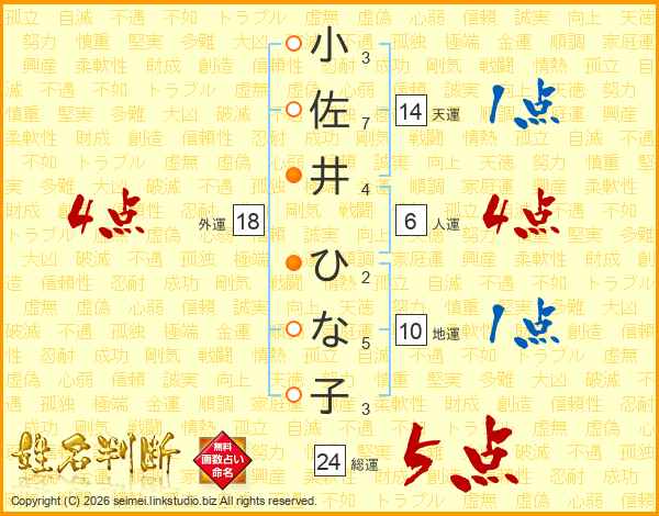 小佐井ひな子さんの外運は18画の4点!