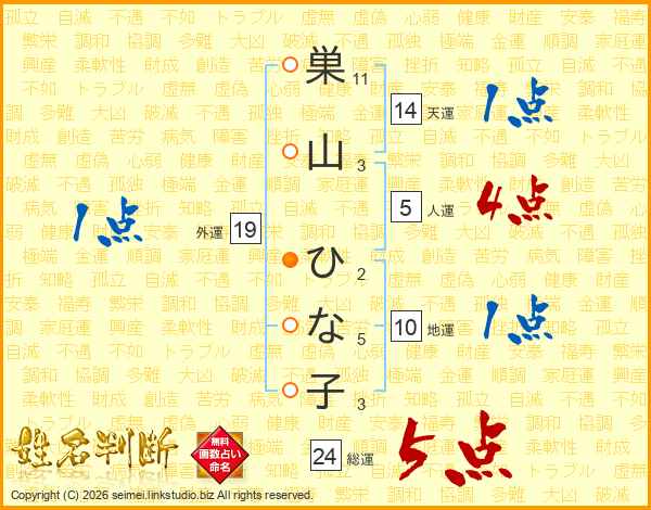 巣山ひな子さんの総運は24画の5点!