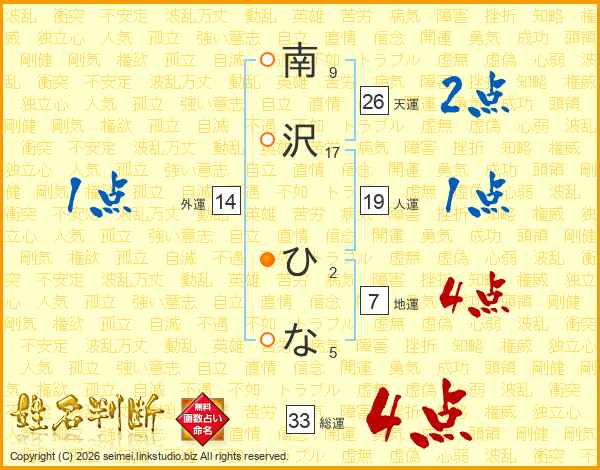 南沢ひなさんの総運は33画の4点!