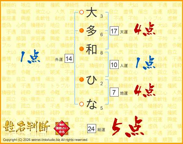 大(3画)多(6画)和(8画) ひ(2画)な(5画)