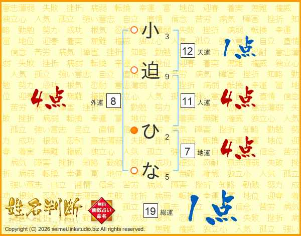 小迫ひなさんの総運は19画の1点!