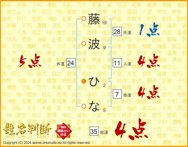 藤波ひなさんの総運は35画の4点!