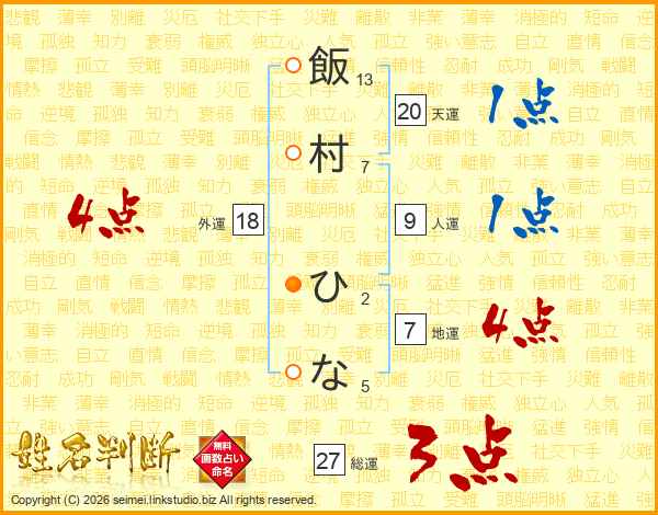 飯村ひなさんの総運は27画の3点!