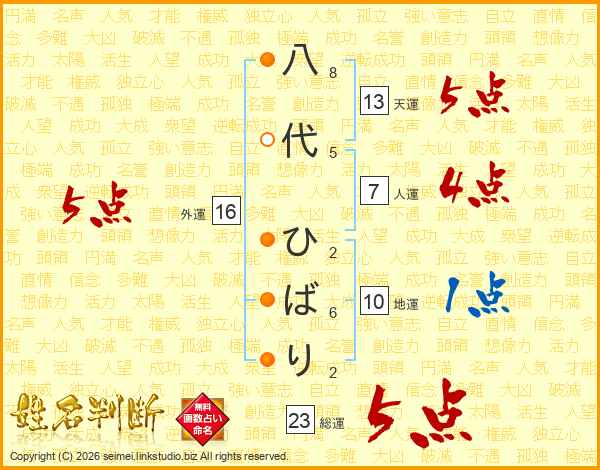八代ひばりさんの外運は16画の5点!
