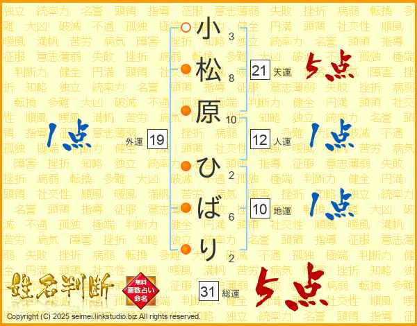 小松原ひばりさんの総運は31画の5点!