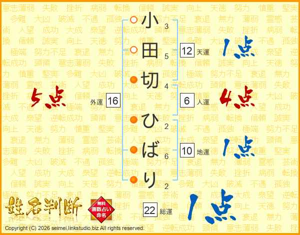 小田切ひばりさんの外運は16画の5点!