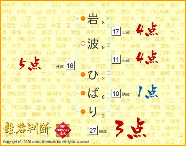 岩波ひばりさんの総運は27画の3点!