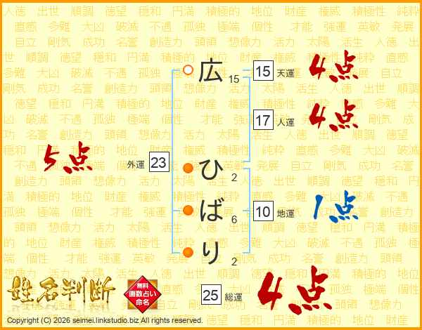 広ひばりさんの総運は25画の4点!