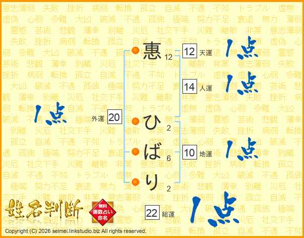 惠(12画) ひ(2画)ば(6画)り(2画)