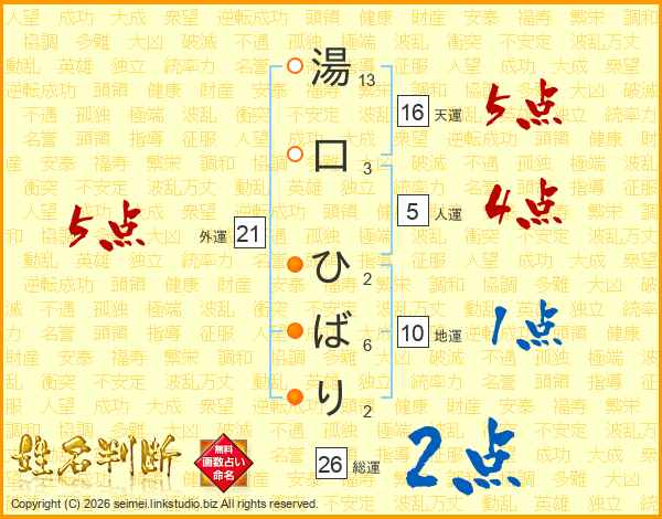 湯口ひばりさんの総運は26画の2点!