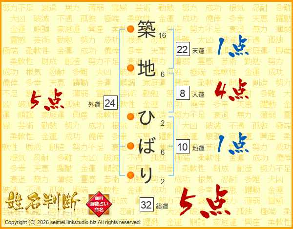 築地ひばりさんの総運は32画の5点!