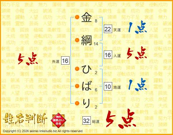 金綱ひばりさんの総運は32画の5点!