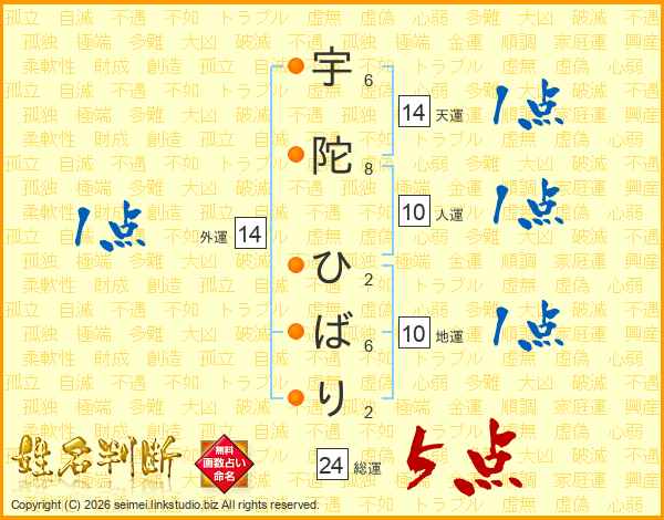 宇陀ひばりさんの外運は14画の1点!