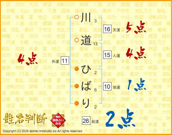 川道ひばりさんの総運は26画の2点!