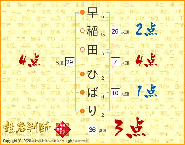 早稲田ひばりさんの総運は36画の3点!