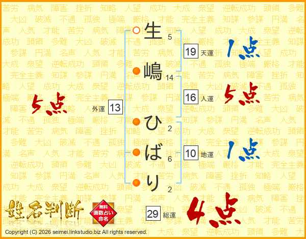 生嶋ひばりさんの総運は29画の4点!