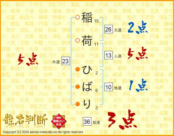 稲荷ひばりさんの天運は26画の2点!