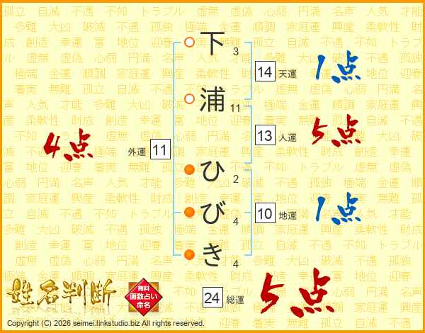 下(3画)浦(11画) ひ(2画)び(4画)き(4画)