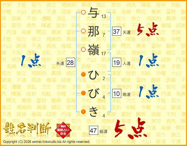 与那嶺ひびきさんの総運は47画の5点!