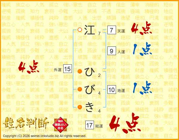江ひびきさんの総運は17画の4点!
