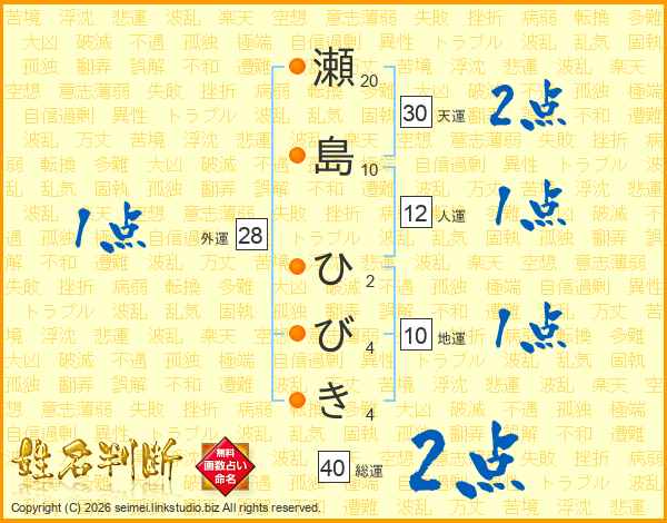 瀬島ひびきさんの総運は40画の2点!