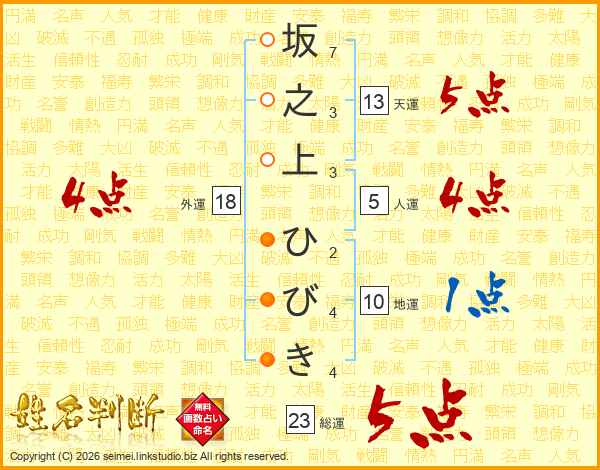 坂(7画)之(3画)上(3画) ひ(2画)び(4画)き(4画)
