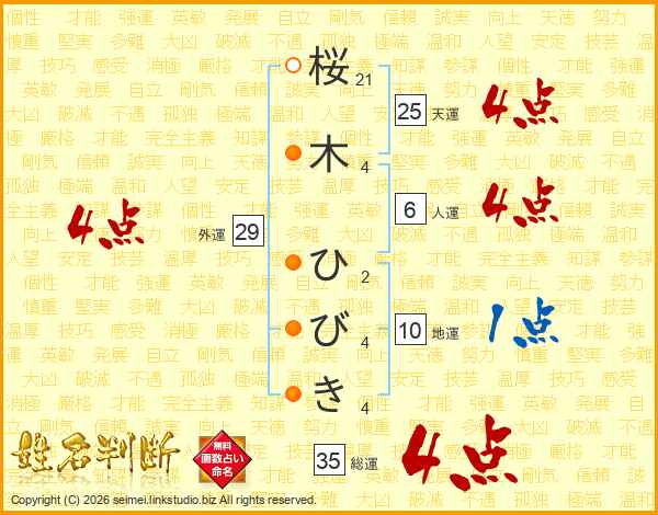 桜(21画)木(4画) ひ(2画)び(4画)き(4画)