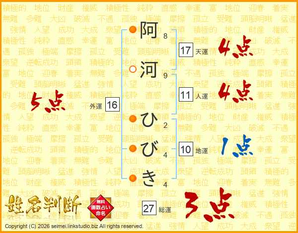 阿河ひびきさんの総運は27画の3点!