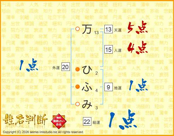 万(13画) ひ(2画)ふ(4画)み(3画)