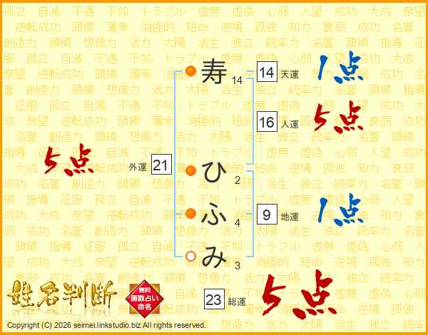 寿ひふみさんの総運は23画の5点!