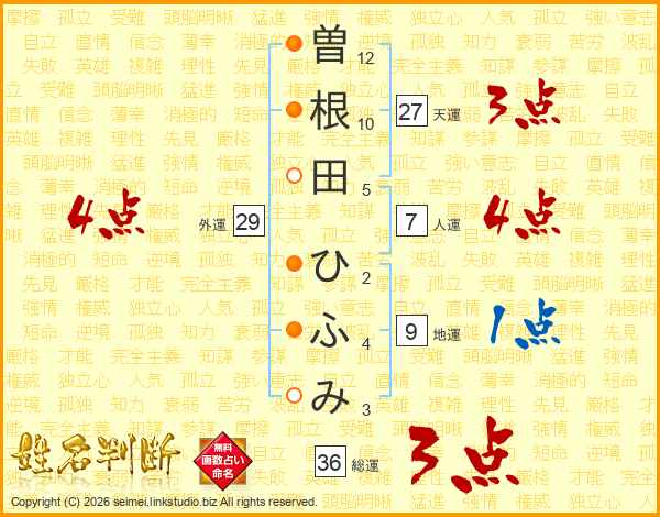 曽根田ひふみさんの総運は36画の3点!