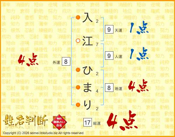 入江ひまりさんの総運は17画の4点!