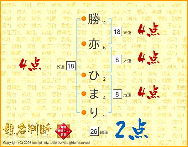勝(12画)亦(6画) ひ(2画)ま(4画)り(2画)