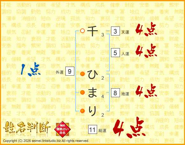 千ひまりさんの総運は11画の4点!
