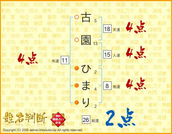 古園ひまりさんの総運は26画の2点!