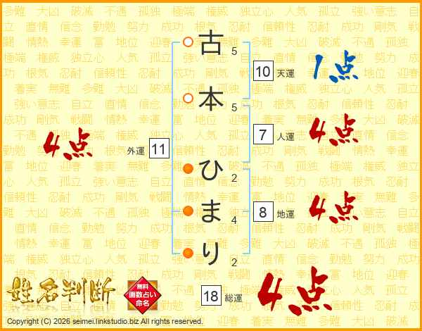 古本ひまりさんの人運は7画の4点!