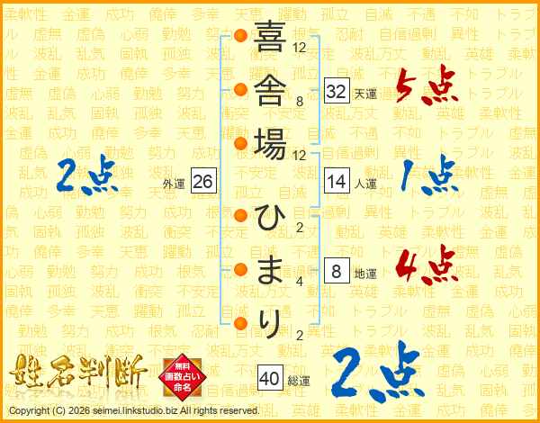 喜舎場ひまりさんの天運は32画の5点!