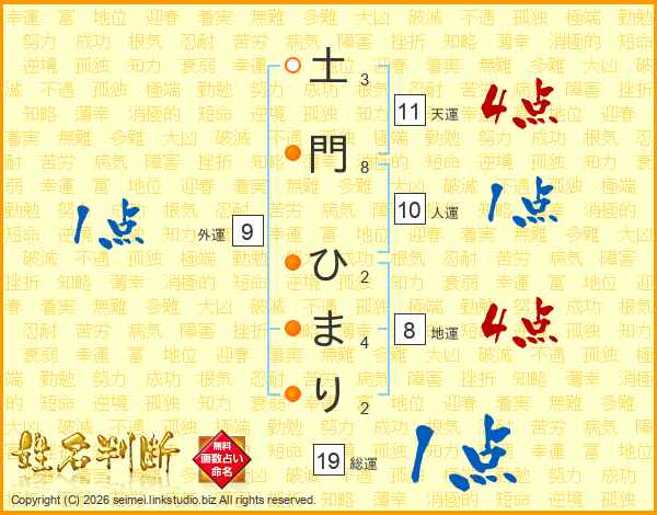 土(3画)門(8画) ひ(2画)ま(4画)り(2画)