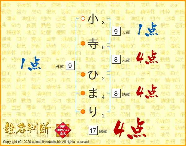小寺ひまりさんの総運は17画の4点!