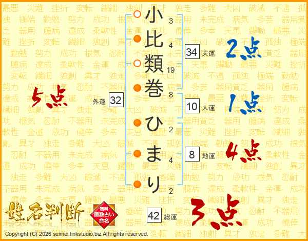 小比類巻ひまりさんの総運は42画の3点!