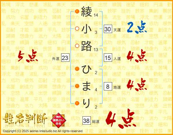 綾小路ひまりさんの総運は38画の4点!