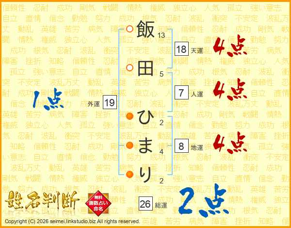 飯田ひまりさんの総運は26画の2点!