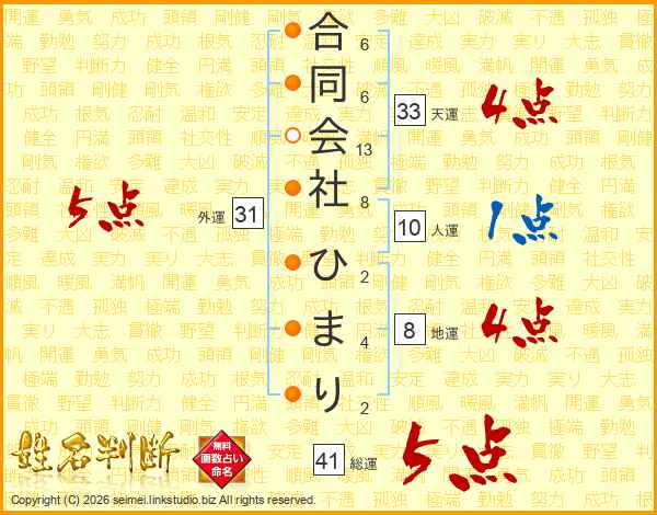 合(6画)同(6画)会(13画)社(8画) ひ(2画)ま(4画)り(2画)