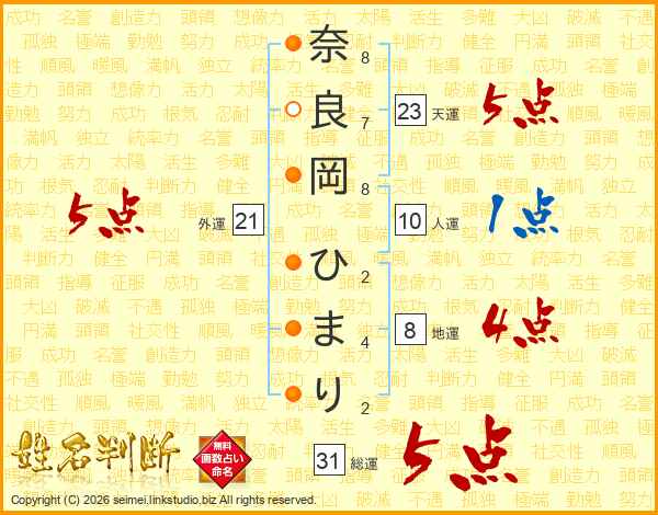 奈良岡ひまりさんの総運は31画の5点!