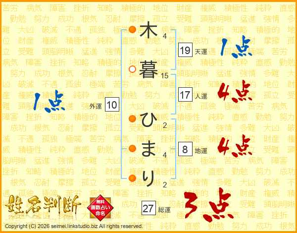 木暮ひまりさんの総運は27画の3点!