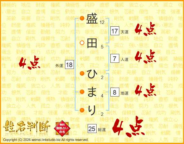 盛田ひまりさんの総運は25画の4点!